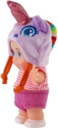 Tato malá panenka s velkýma očima a veselým výrazem je skvělým společníkem pro každodenní hraní. Pevné plastové tělíčko dobře drží tvar, pohyblivé paže v ramenou umožňují snadné polohování a převlékání. Barevná zvířecí čepička dodává panence jedinečný styl a podporuje vyprávění příběhů.