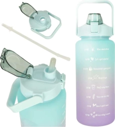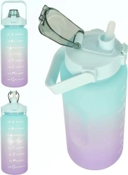 Sportovní láhev na vodu 2 l s praktickou slámkou, těsným víčkem a motivační časovou stupnicí vám pomůže dodržet pitný režim doma, ve fitku i na cestách. Široké hrdlo usnadňuje čištění i přidání ledu či ovoce, pohodlné držadlo zajišťuje snadné nošení.