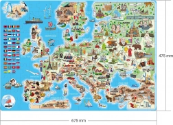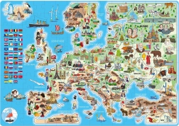 Objevujte Evropu zábavnou formou s dětským puzzle o 160 dílcích. Na mapě najdete ilustrace charakterizující jednotlivé státy a jejich vlajky, všechny popisky jsou v češtině. Skládání podporuje postřeh, zručnost a soustředění a díky barevným obrázkům zvířat, rostlin a památek rozvíjí představivost i znalosti zeměpisu.