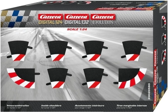 Vylepšete své závodní okruhy s vnitřními krajnicemi pro zatáčku 1/30° (R1), kompatibilními s autodráhami CARRERA Evolution, Digital 132 a Digital 124. Balení obsahuje 6 kusů pro stabilnější průjezd zatáčkami a realističtější vzhled tratě.