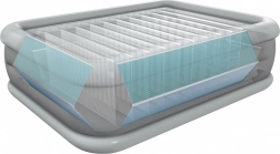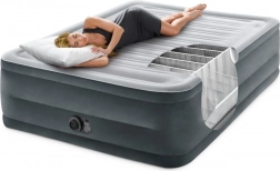 Nadstandardně vysoká nafukovací matrace INTEX poskytne plnohodnotné spaní pro dvě osoby doma i na cestách. Vestavěná elektrická pumpa se postará o bleskové nafouknutí a vyfouknutí, zatímco flockovaný (semišový) povrch je příjemný na dotek a brání sklouzávání prostěradla. Robustní konstrukce a zpevněné komory zajišťují stabilitu a podporu páteře během celé noci.