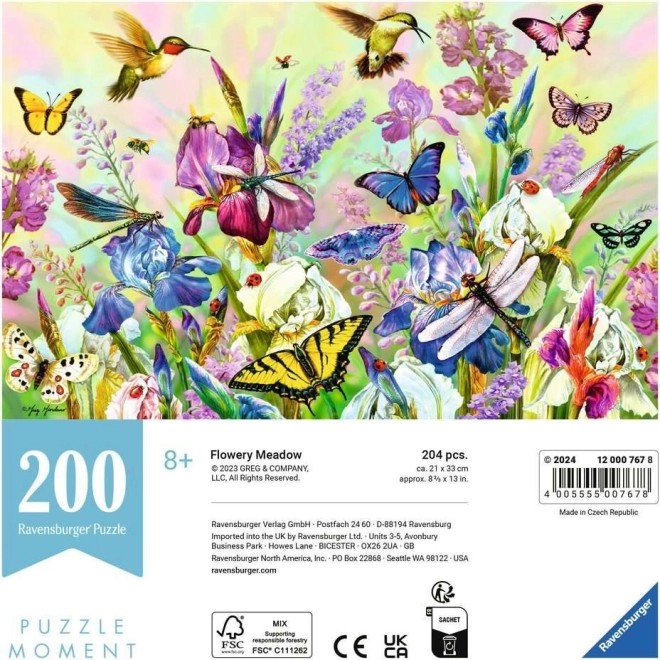 Dopřejte si chvilku klidu s prémiovým puzzle RAVENSBURGER. Série Puzzle Moment přináší relaxační skládání s motivem rozkvetlé louky a 200 přesných dílků, které do sebe dokonale zapadají. Ideální pro krátké pauzy i večerní odpočinek.