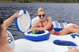 Nafukovací ostrov je ideální pro letní odpočinek na vodní hladině. Je vyroben z odolného materiálu, který zajistí dlouhou životnost a snadnou manipulaci. Díky opěradlům a dvěma držákům na nápoje si můžete doslova užít pohodlí jako na obývacím gauči! A to vše při stálé teplotě vašich nápojů, které udrží vestavěná lednička.