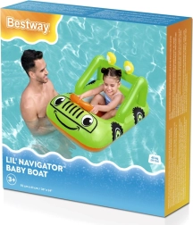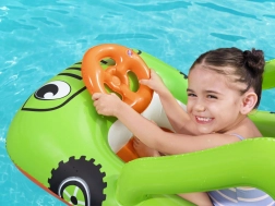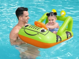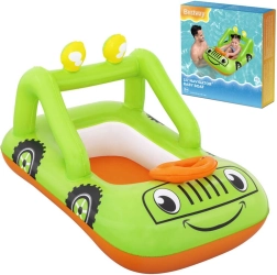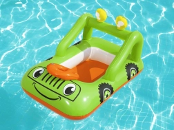 Zábavný nafukovací člun pro děti ve tvaru auta od BESTWAY zpříjemní první seznamování s vodou. Lehká konstrukce, pohodlné sedátko a nafukovací volant pro ještě větší zábavu. Odolný PVC materiál, bezpečnostní ventil a živé barvy pro radostné a bezpečné vodní hrátky u bazénu, na jezeře i u moře.