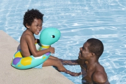 Kruh pomáhá dítěti udržet se nad hladinou a zároveň neomezuje v pohybu při hrách ve vodě.