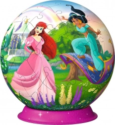 Objevte zábavu ze skládání třetího rozměru. Speciálně zahnuté plastové dílky přesně zapadají do sebe, takže není potřeba žádné lepidlo. Po složení získáte pevnou a hladkou kouli s oblíbenými motivy Disney princezen, která skvěle vynikne na přiloženém podstavci.