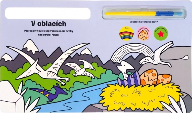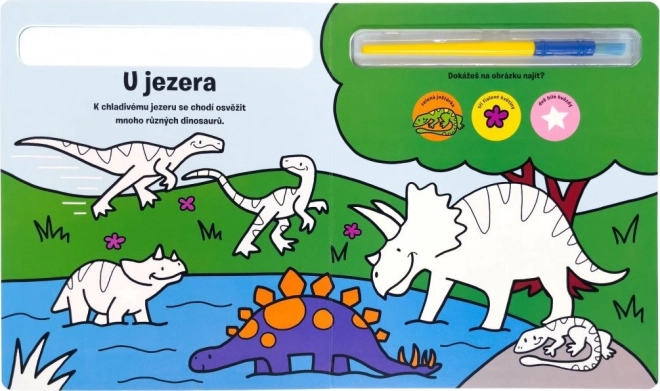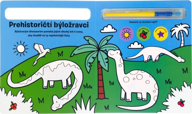 Ponořte se do světa pravěkých tvorů s knihou Vybarvi mě! Dinosauři. Tato kniha má pevné stránky s částečně barevnými obrázky, které vaše děti mohou vybarvovat znovu a znovu. Stačí trochu vody a barvy se objeví kouzlem na bílém papíře, a poté stejně rychle zmizí, jakmile zaschnou.