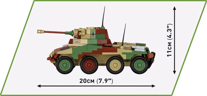 Model Sd.Kfz. 234/2 PUMA měří cca 20 × 7,5 cm a vyniká autentickým tvarem, kamufláží a detailními potisky, které zvýrazní každý panel a kryt.