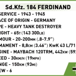 Sestavte si legendární Panzerjäger Tiger (P) známý jako Ferdinand – těžký stíhač tanků proslulý z bitvy u Kurska. Model v měřítku 1:28 je dlouhý přibližně 28,5 cm a vyniká realistickými detaily, funkčními prvky a kvalitním zpracováním. Všechny grafické prvky jsou provedeny trvanlivým potiskem bez použití samolepek.