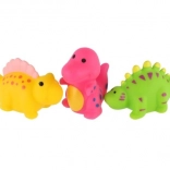 Sada 3 roztomilých stříkacích dinosaurů promění každé koupání v radostnou hru. Hračky jsou z měkké, příjemně stlačitelné gumy, díky čemuž se snadno drží i nejmenším dětem. Vhodné do vany, sprchy i bazénu.