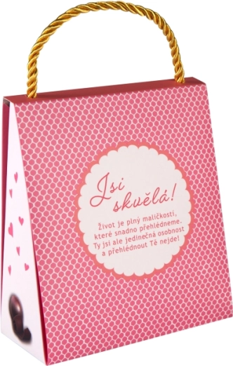 Tyto pralinky jsou perfektní volbou, když chcete někomu vyjádřit uznání a radost jednoduchým, ale účinným gestem. Nápis „Jsi skvělá“ z nich dělá ideální dárek pro partnerku, kamarádku, maminku nebo kolegyni. Elegantní balení a poctivá chuť potěší smysly i oko.