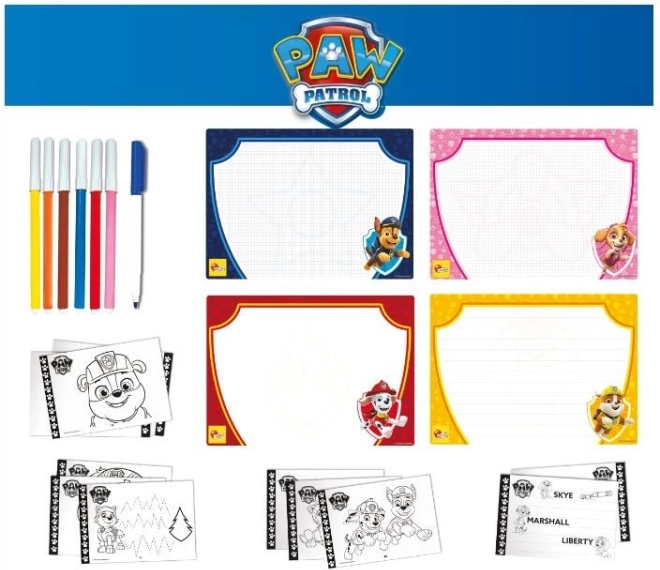 Škola kreslení s oblíbenými postavičkami z PAW PATROL motivuje děti k objevování světa kresby zábavnou formou. Opakovaně použitelné tabulky a přiložený stíratelný fix umožňují bez obav trénovat, opravovat a zlepšovat se v kreslení.