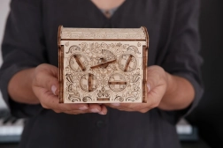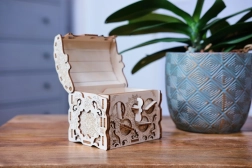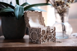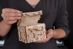 Proměňte darování v dobrodružství. Elegantní dřevěná krabička s jemnými výřezy a dekorativními detaily slouží jako mechanický hlavolam – obdarovaný musí přijít na správný postup, aby se dostal k ukrytému překvapení. Díky kvalitnímu zpracování je box nejen funkční, ale i dekorativní doplněk do interiéru.