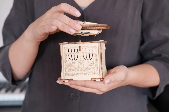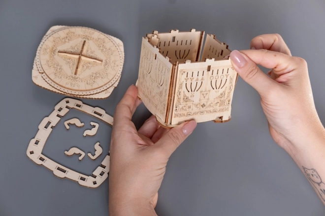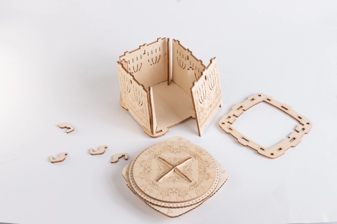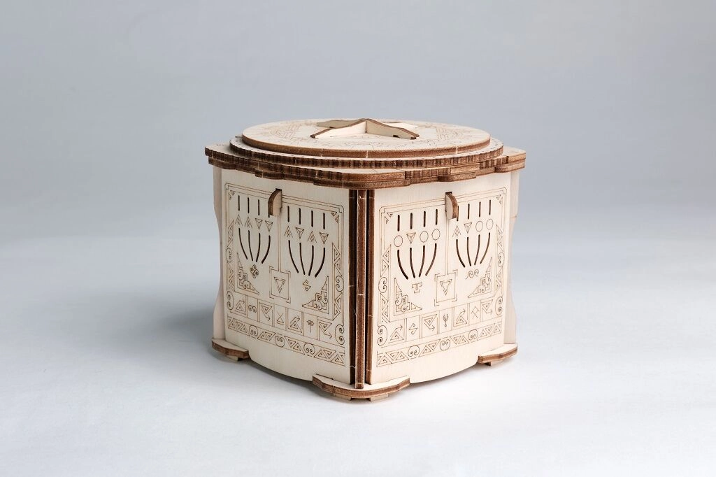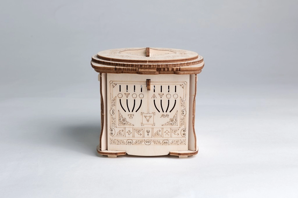 Dekorativní gravírování a promyšlený mechanismus zajistí zábavu i stylový vzhled v interiéru. Krabička slouží jako hlavolam i designový doplněk.