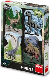 - 4 různé obrázky: Každý obrázek zachycuje jiný moment ze světa dinosaurů.