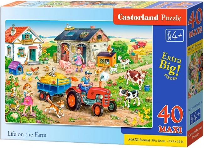 Velké, barevné puzzle s motivem života na farmě potěší malé stavitele. Sada obsahuje 40 dílků MAXI a po složení vytvoří obrázek 59 × 40 cm. Ideální pro děti od 4 let – velké dílky se dobře drží a kvalitní zpracování CASTORLAND zaručuje odolnost i bezpečnost.