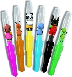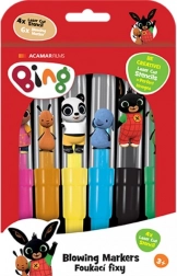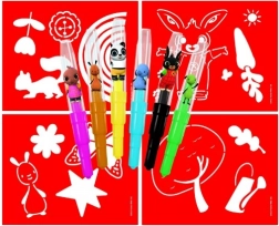 Sada foukacích fixů BING potěší všechny malé umělce. Šest pestrých barev a tematické šablony umožní snadno vytvářet originální obrázky s oblíbenými postavičkami. Jednoduché foukání přes fix vytváří jemné přechody a efekty spreje bez nepořádku.