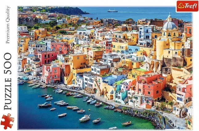 Tento úžasný 500dílný puzzle zobrazuje malebné pobřežní město Procida s jeho pestrými domky a přístavištěm malých lodí. Sestavený obraz má rozměry 480x340 mm, ideální pro vystavení na stěně nebo konzolovém stole.