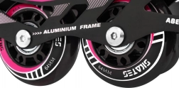 Hliníkový rám, ložiska ABEC 7 a PU kolečka 64×24 mm (85A) zaručují hladký skluz a dlouhou životnost.