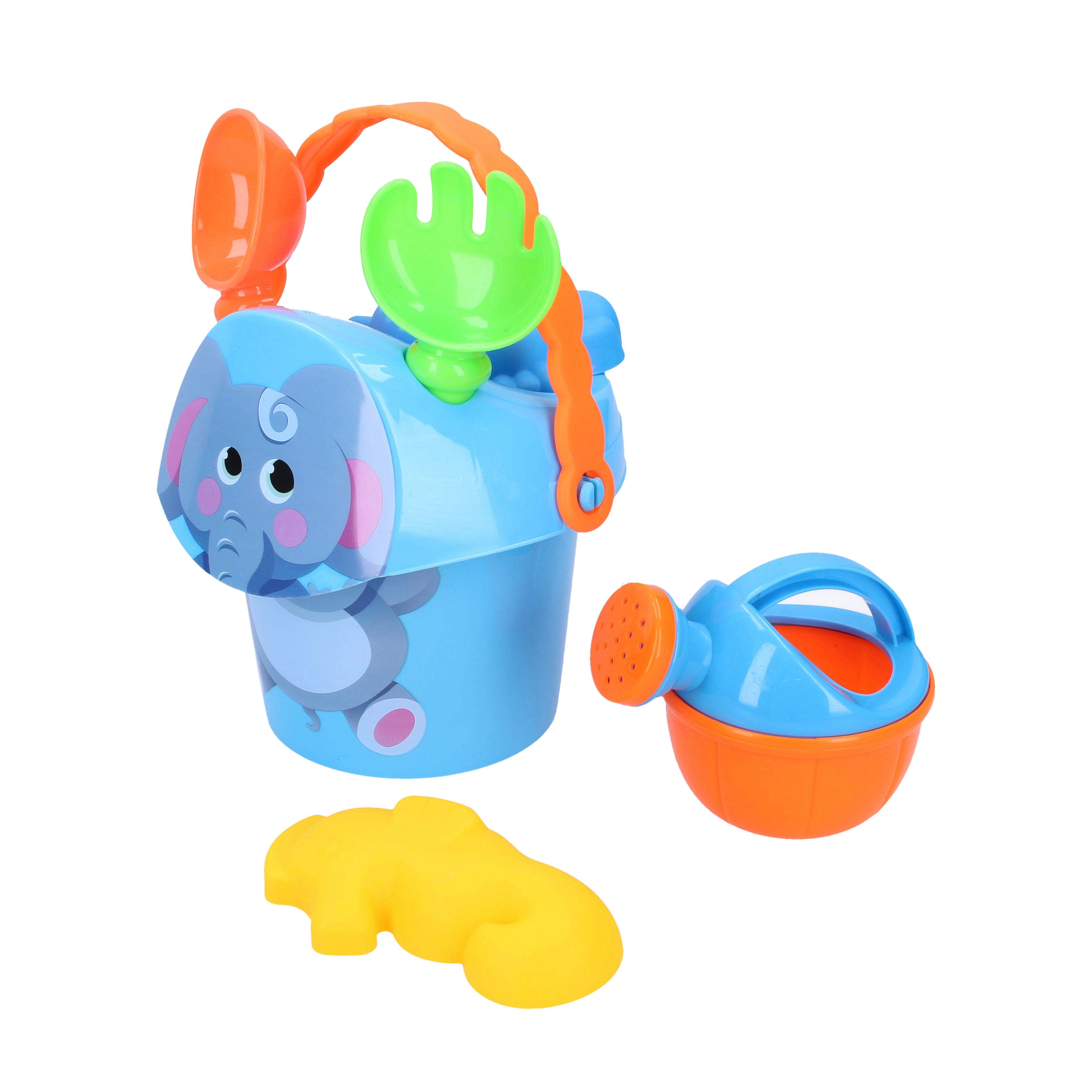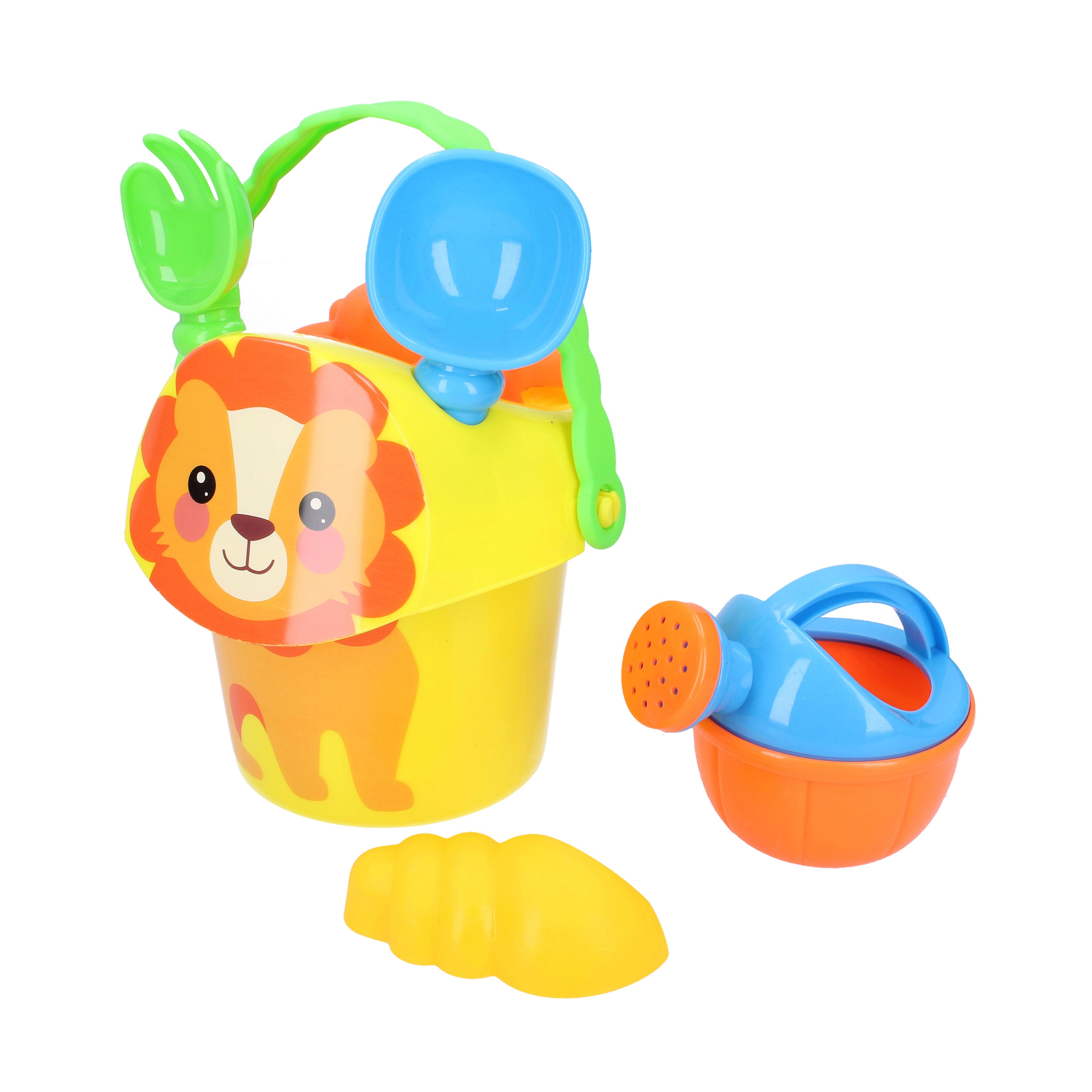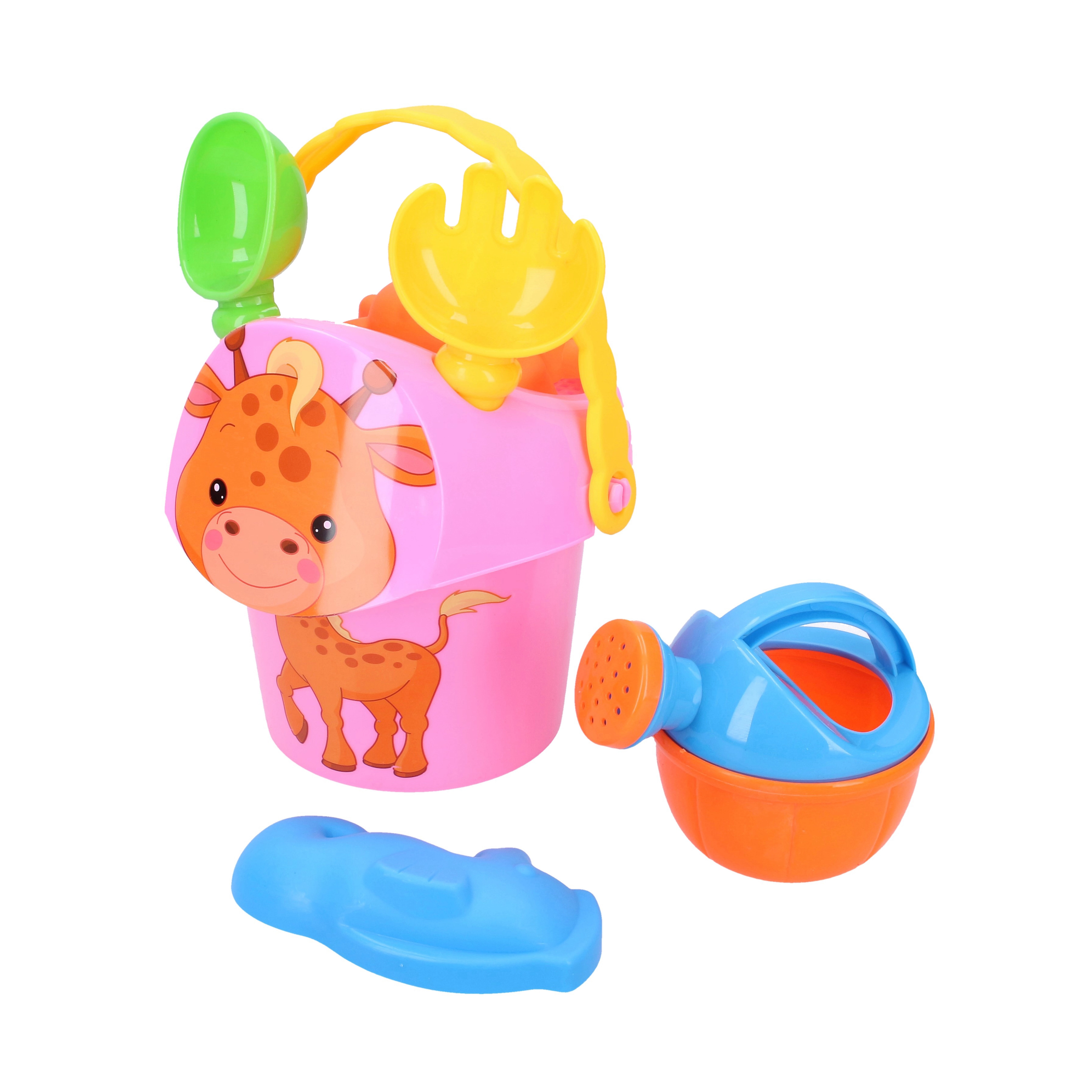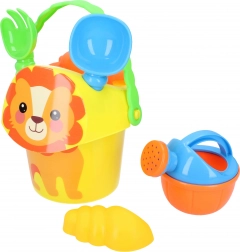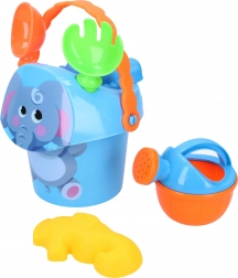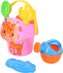 - Kyblík s obrázkem zvířátka (15 cm), lopatka, hrabičky, konvička, 2 formičky