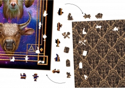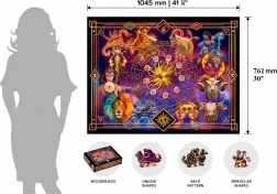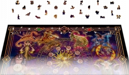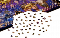 Dřevěné puzzle WOODEN CITY Zvěrokruh přináší mimořádně zábavné a estetické skládání. Díky speciálně tvarovaným dílkům s laserovými detaily vzniká fascinující mozaika, kterou si užijí milovníci netradičních puzzlí i sběratelé. Oboustranné provedení umožňuje skládat buď podle barevného motivu na líci, nebo podle tvarů s opakujícím se vzorem na rubu.
