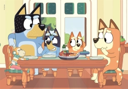 - Oblíbený motiv Bluey: přitáhne pozornost a motivuje ke skládání.