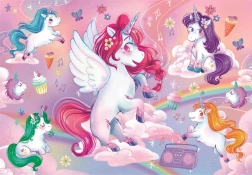 Oblíbené maxi puzzle s motivem jednorožců přináší radost ze skládání a jistotu vysoké kvality od značky CLEMENTONI. Velké dílky se snadno drží a přesně do sebe zapadají, takže jsou ideální pro začínající skládače i společné rodinné skládání.