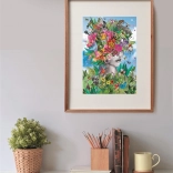 - Hlavou v džungli – koláž květin, zvířat a ženského portrétu