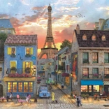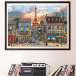 Romantická ulice s Eiffelovou věží a večerní atmosférou vytváří po složení dekorativní obraz vhodný k zarámování.