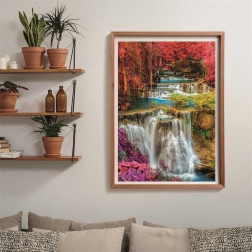 Víceúrovňové kaskády uprostřed podzimní přírody vytvářejí vizuálně bohatou scénu plnou detailů, které vás budou bavit skládat.