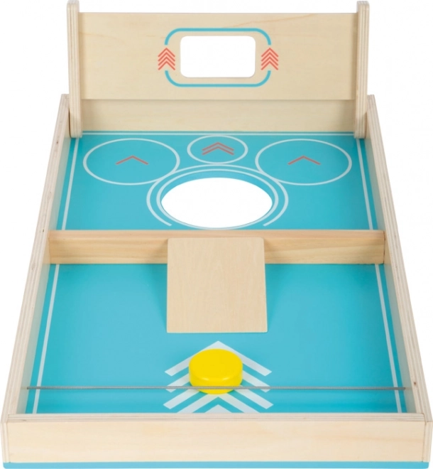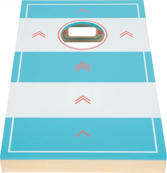 Tato kvalitní dřevěná herní deska přináší dvě oblíbené aktivity v jednom kompaktním provedení. Na jedné straně si zahrajete cornhole – házení látkových pytlíků do otvoru, na druhé straně stolní hokej – vystřelování puku pomocí gumičky na cíle. Díky šipkovému značení bodů místo čísel zvládnou skóre počítat i menší děti.