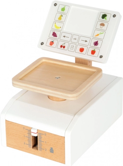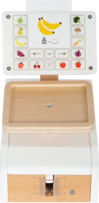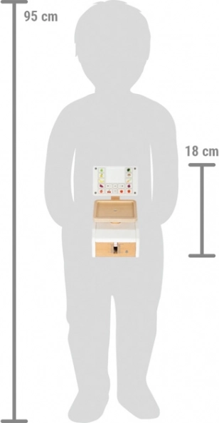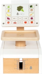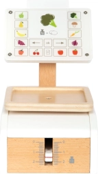 Dětská váha small foot Fresh je ideální doplněk do každé dětské kuchyňky nebo obchodku. Reálný pohyb ukazatele i misky při zatížení podporuje pochopení principu měření hmotnosti. Velký „displej“ z kvalitního akrylátu je potištěn ovládacími prvky a motivy ovoce a zeleniny, což zvyšuje přehlednost i zábavu při hře.