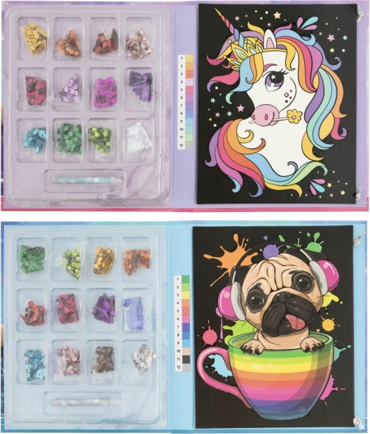 Objevte jednoduchý a zábavný způsob, jak děti vtáhnout do tvoření. S touto sadou na tvoření podle čísel vytvoří krásný obrázek s motivem jednorožce nebo pejska. Stačí spojovat barvy s čísly a pomocí dávkovacího pera umisťovat barevná kolečka na správná místa.