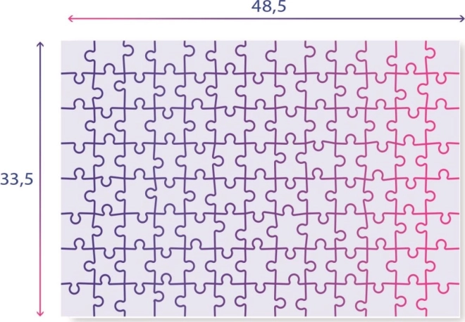 Formát 104 dílků se skvěle hodí pro začínající i pokročilejší malé skládače. Puzzle podporuje jemnou motoriku, logické myšlení a trpělivost. Po složení má rozměr přibližně 48,5 × 33,5 cm – ideální velikost pro prezentaci na stole nebo podložce.
