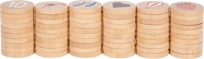 - 60 pevných dřevěných žetonů s barevnými ilustracemi