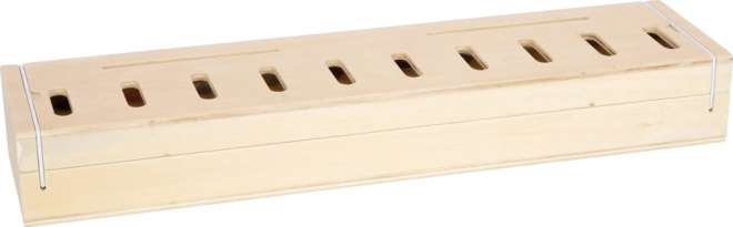 Dřevěný zásobník s deseti přihrádkami udrží vše uspořádané. Gumičkové západky zajistí bezpečné uzavření – ideální na cesty.