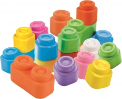 Obohaťte hru svého dítěte s touto jedinečnou sadou 20 měkkých barevných kostek. Kostky jsou ideální pro první stavby vašich dětí a rozvíjí jejich kreativitu. Všechny kostky jsou bezpečné, omyvatelné a vhodné i pro hru ve vodě. Díky praktickému obalu na zip jsou snadno přenosné a skladné.