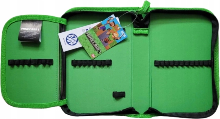 Praktický jednokomorový školní penál s motivem Minecraft potěší všechny mladé fanoušky hry. Nabízí jednu přehlednou chlopeň, gumová poutka na psací potřeby a pevný zip s velkým taháčkem pro snadné otevírání. Uvnitř nechybí průhledná fólie pro rozvrh hodin. Rozměry cca 21 × 13,5 cm. Psací potřeby nejsou součástí balení.