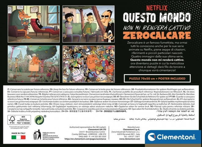 Objevte prémiové puzzle s jedinečnou grafikou z populárního seriálu Netflix Tenhle svět mě nedostane (Zerocalcare II). Díky kvalitnímu tisku a sytým barvám si užijete každou minutu skládání a výsledný obrázek skvěle vynikne i v rámečku.