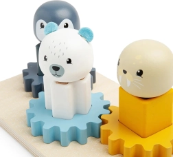 Obsahuje tučňáka, mrože a ledního medvěda, které děti mohou umisťovat na různě barevné podstavce a otáčet s nimi.