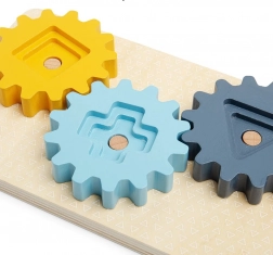 Tato motorická deska je vyrobena ze 100% FSC® certifikovaného dřeva a potravinářského silikonu, což zaručuje šetrnost k životnímu prostředí a udržitelné hospodaření s lesy. Děti si mohou hrát s deseti různými díly, které jim umožňují interakci prostřednictvím stohování a otáčení. Přiřazením zvířátek k jejich barevným tvarům se děti učí rozpoznávat barvy a tvary, zatímco rozvíjejí své pohybové a paměťové schopnosti.