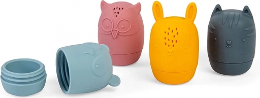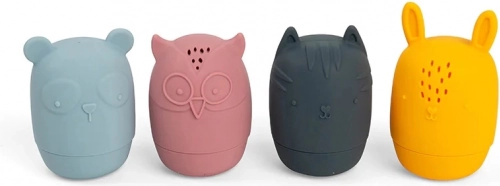 Čtyři roztomilá zvířátka, včetně pandy, králíka, kočky a sovy, přinášejí zábavu do každé koupele.