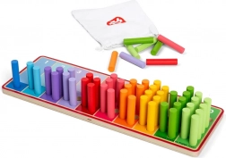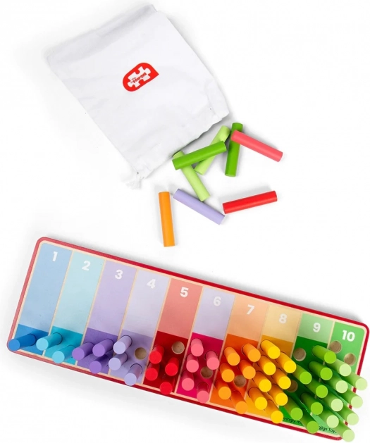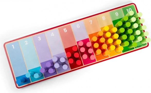 Duhové počítací tyčinky jsou ideální volbou pro děti od 18 měsíců, které se chtějí naučit počítat a rozpoznávat barvy. Hračka obsahuje dřevěnou desku s barevně označenými sekcemi a 55 barevných tyčinek k vkládání do těchto sekcí. Všechny části tohoto produktu jsou vyrobeny z certifikovaného FSC® dřeva, a proto jsou nejen bezpečné pro děti, ale také šetrné k životnímu prostředí.