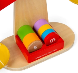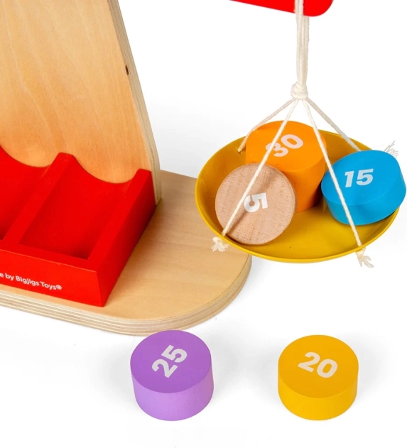 Vybavená dřevěným rámem, dvěma balančními miskami a sadou sedmi závaží s čísly, váha umožňuje dětem experimentovat s různými kombinacemi a učit se o rovnováze. Cílem je dosáhnout balancovaného stavu přidáváním nebo odebíráním závaží. Ideální pro učení STEM, která zahrnuje kreativitu a novátorské myšlení. Rozvíjí taktéž jemnou motoriku, prostorové vnímání a schopnost řešit problémy.