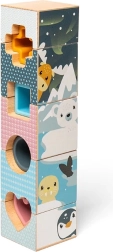Arktická věž pomáhá rozvíjet kognitivní dovednosti pomocí dřevěných a silikonových dílků navržených s motivem arktických zvířat.