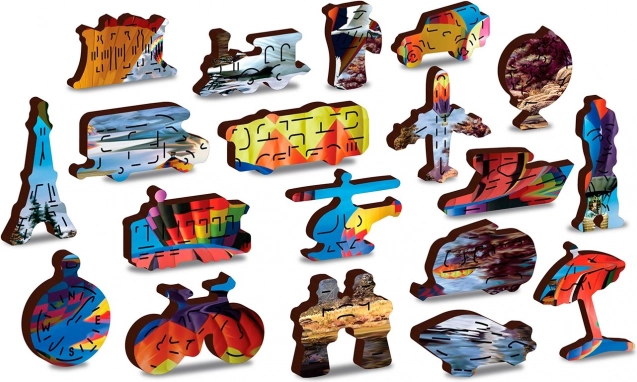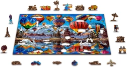 Elegantní a zábavná výzva pro milovníky puzzle. Dřevěné puzzle s motivem horkovzdušných balónů nabízí jedinečný zážitek díky 61 speciálně tvarovaným dílkům ve tvaru zvířat, staveb a předmětů. Některé z nich lze postavit jako malé figurky, což z puzzle dělá skvělý dárek i stylovou dekoraci.