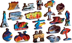 61 speciálních dílků ve tvaru zvířat, staveb a předmětů. Precizní laser dodává hladké hrany a krásně zvýrazněné detaily.