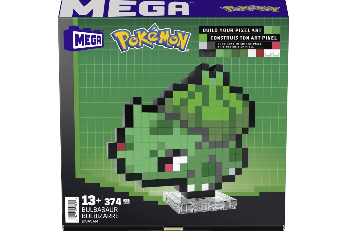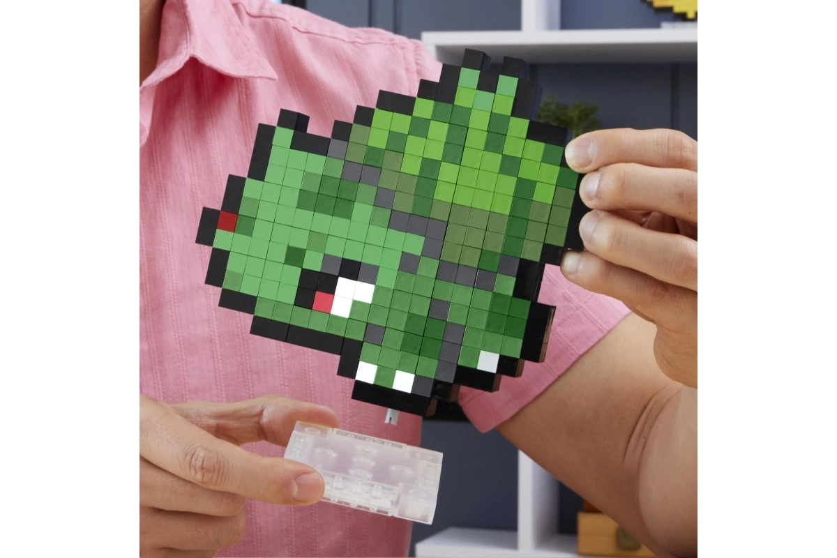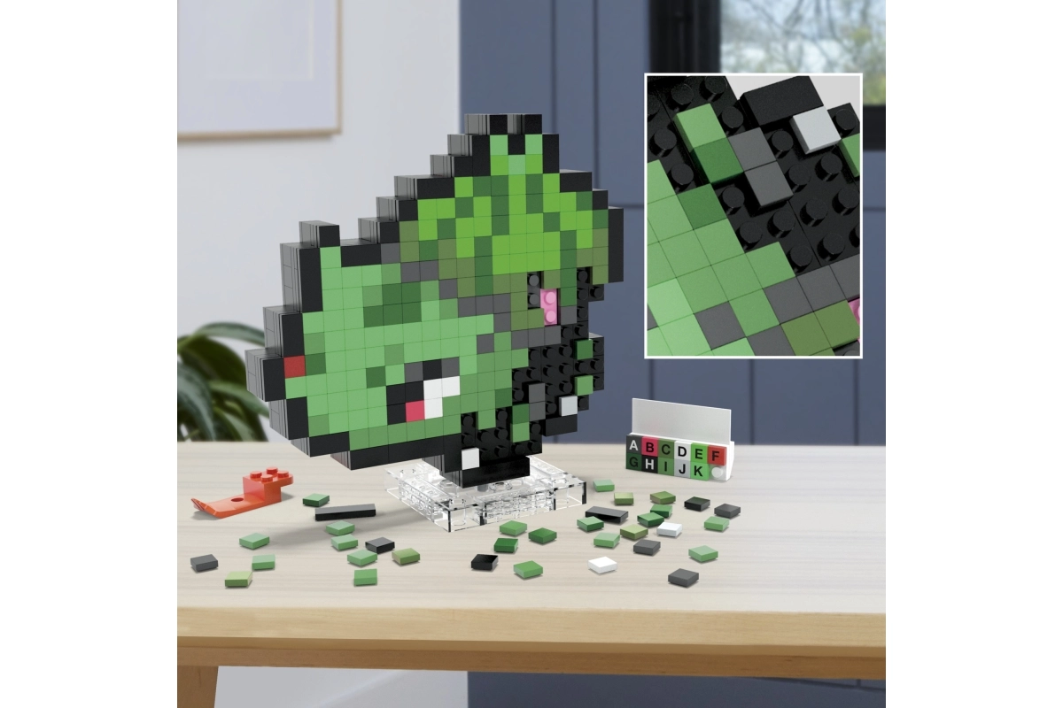 Užijte si zábavné skládání a jedinečný vzhled v 8bit estetice. Pixelové dílky věrně zachycují tvar i barvy oblíbeného Pokémona BULBASAUR a vytvářejí poutavý retro vzhled, který vynikne na poličce, pracovním stole i ve vitríně.