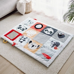 Měkoučká a bezpečná hrací deka pro nejmenší s motivem lesních zvířátek od CANPOL BABIES přináší smyslovou stimulaci, rozvoj motoriky a pohodlné místo na hraní i bříško. Obsahuje 5 odnímatelných hraček, zrcátko a hrazdičky s klipy, které dítě motivují k natahování, otáčení a objevování. Snadná údržba – pratelné v pračce (mimo zrcátko a oblouky).