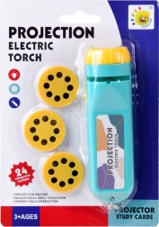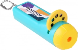 Tato kapesní projekční baterka promění večerní chvilky v poutavé vyprávění. Tři výměnné disky nabízejí témata dinosauři, hmyz a ovoce, každé s osmi snímky – celkem 24 obrázků. Stačí vložit disk, otočením vybrat snímek a promítat na hladký povrch.
